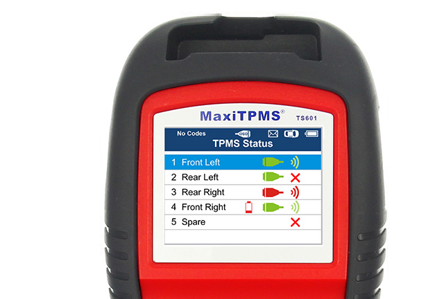 The TS601 can provide relearn procedures for specific sensors and connect with the OBDII cord to the vehicle's ECU to offer multiple programming options including clone sensor IDs, or auto create ID, or manual write sensor IDs with no sensor re-learn required for sensor positioning. The TS601 also offers advanced TPMS diagnostics like Live Data Graphing for performance vehicles and complete system diagnostics like Emissions Testing and Live Data Graphing to help technicians complete multiple projects quickly with a single tool.