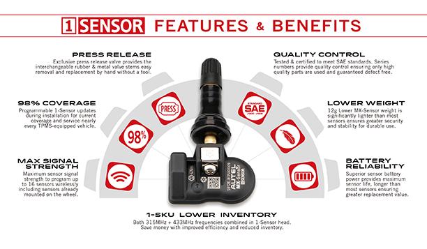 Greatly reduce sensor inventory investment with the 1-SKU Autel MX-Sensor 1-Sensor solution providing 98% vehicle coverage.